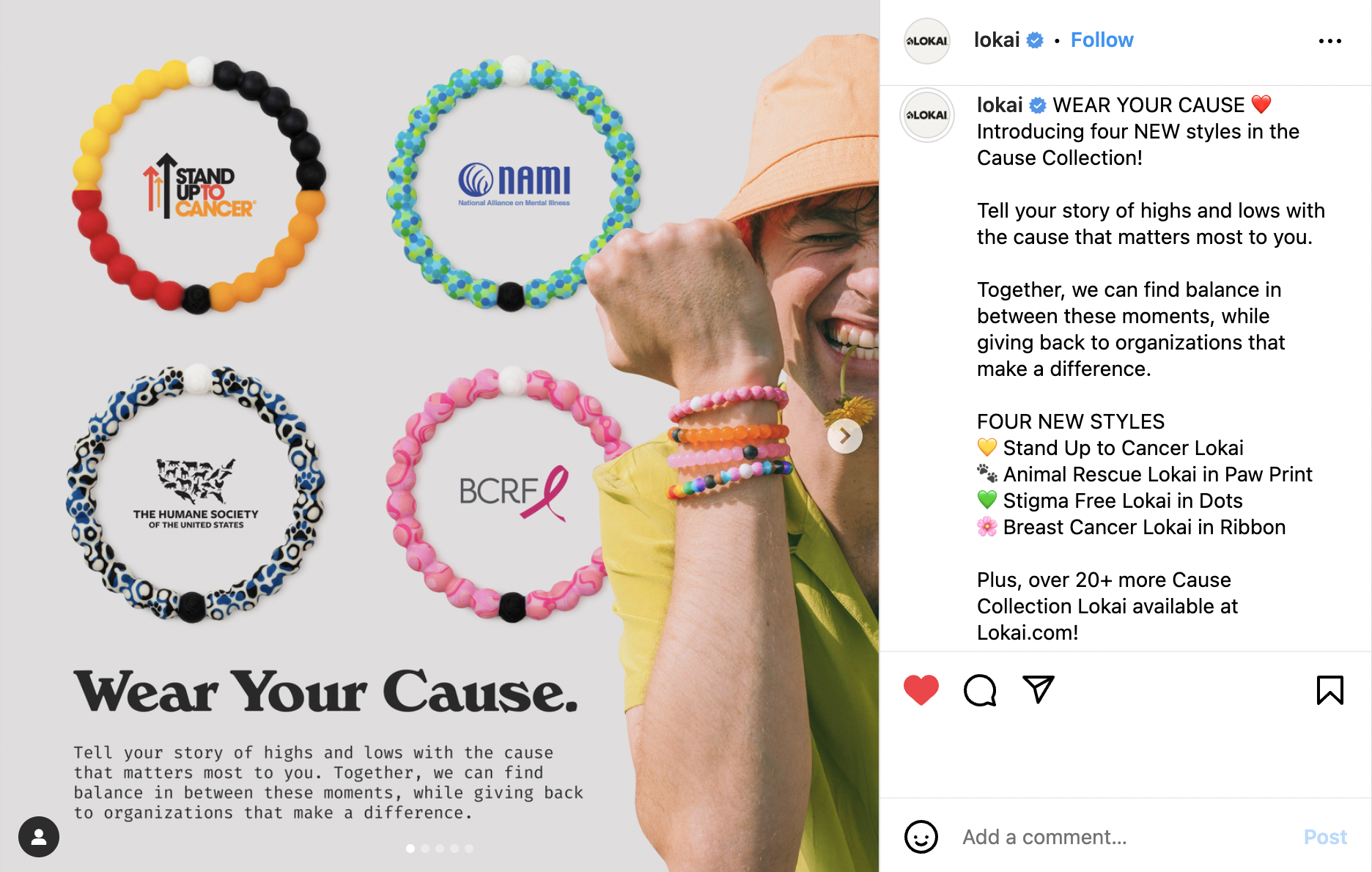 The Lokai Cause Collection features an assortment of multicolor bracelets, all benefiting different charities. Understanding that a connection to any one of these causes carries a meaningful backstory for wearers, our team viewed these bracelets as a symbol of hope during times of adversity.